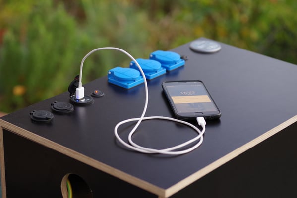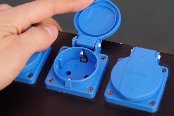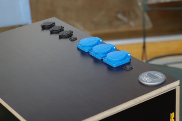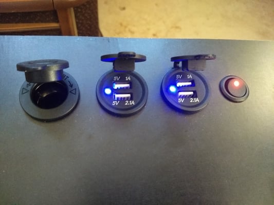 eine KFZ-Buchse für 12 V Geräte wie z.B. Beleuchtung oder Pumpen.