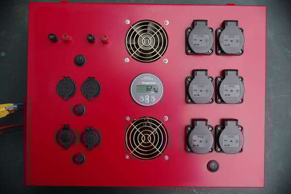 230 V Steckdosen, einen 700 W MPPT Solarladeregler, einen Unterspannungsschutz für die Batterie, zwei 12 V Ausgänge für